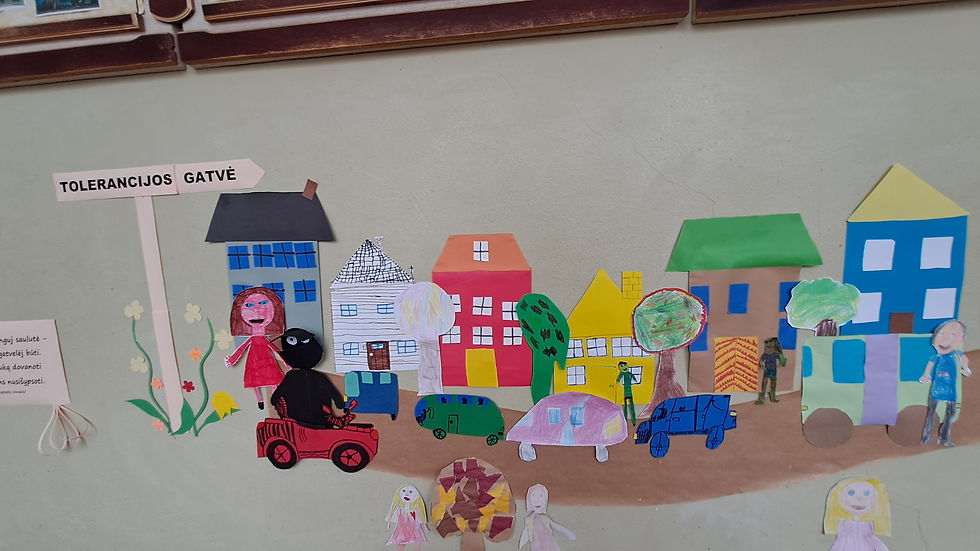 Po rudens atostogų mokiniai aktyviai įsijungė į pilietinės iniciatyvos veiklas, skirtas paminėti Tarptautinę Tolerancijos dieną – lapkričio 16-ąją. Etikos ir istorijos pamokose aptarė tolerancijos sąvoką, pozityvius pokyčius visuomenėje, analizavo netolerancijos pavyzdžius. Šių metų Tolerancijos dienos simbolis – Tolerancijos gatvė. Klasės valandėlių metu mokiniai kūrė gatvės elementus – statinius, transporto priemones, žmones, augalus, gyvūnus, ženklus, žibintus ir perkėlė į bendrą erdvę, simbolizuojančią, kad skirtingumas netrukdo gyventi ir veikti kartu.