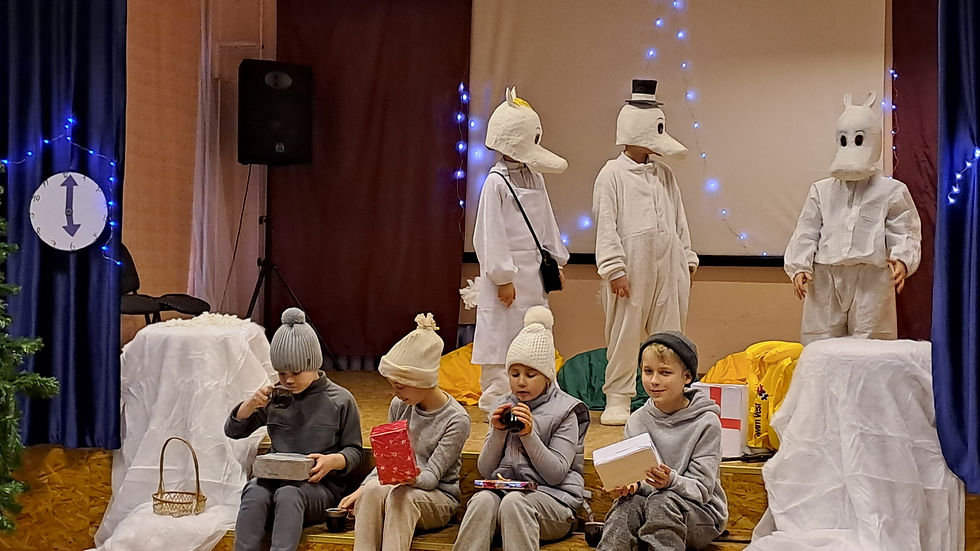 Pradinių klasių mokiniai dalyvauja skaitymo skatinimo projekte „Skaitymo virusas“, kurį koordinuoja mokytoja Vita Januševičienė. Pirmąjį pusmetį ilgalaikė veikla buvo skirta susipažinti su smagiais rašytojos Tuvės Janson herojais Troliais Mumiais, kurie skaitytojams pristatyti prieš 80 metų. Pradėję nuo knygos „Mažieji troliai ir didysis potvynis“, pradinukai su bibliotekininke Agne Januševičiene keliavo vis tolyn į Muminukų pasaulį. Vaikai klausėsi skaitomų kūrinių, skaitė patys, aptarė ir piešė iliustracijas. Kartu su keramikos būrelio vadove Vytaute Kuzmaite mokiniai lipdė kūrinių herojus ir scenas iš skaitytų knygų. Pirmokai ir trečiokai su mokytoja Vita Januševičiene sukūrė T. Janson apsakymo „Eglutė“ inscenizaciją, kuriam skambumo suteikti padėjo muzikos mokytoja Vigilija Macienė. Laukiamiausias momentas, kai skaitytas kūrinys atgyja ir keliauja į sceną. Pirmieji Muminukų istorijų žiūrovai buvo darželinukai. Jie džiūgavo atpažinę vaidinančius brolį, sesę, draugus. Susidomėję pasirodymą stebėjo ir kiti pradinukai – įdomu, kaip scenoje atrodo istorija, kurią patys skaitė. Jaunieji aktoriai muzikiniu spektakliu šventinę nuotaiką padovanojo ir savo tėveliams bei mokytojams.